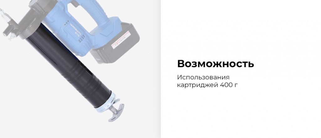 - Возможность использовать картриджи 400 гр;