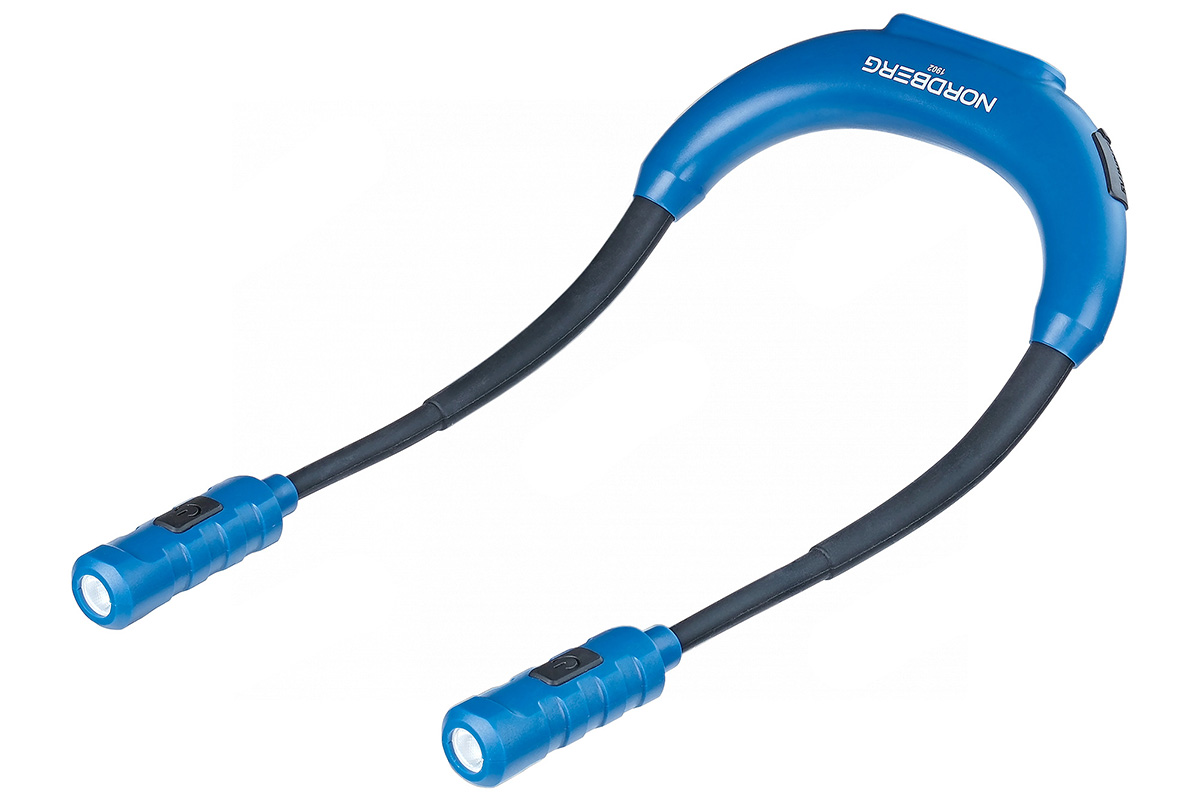 Нашейный светодиодный фонарь NORDBERG 1902 - удобный и практичный фонарь U-образной формы освобождает руки и идеально подходит для обслуживания или осмотра деталей и механизмов автомобиля. Фонарь будет полезен в любых ситуациях, когда необходимо освободить руки. Его можно повесить на шею или прикрепить к любой металлической поверхности.
