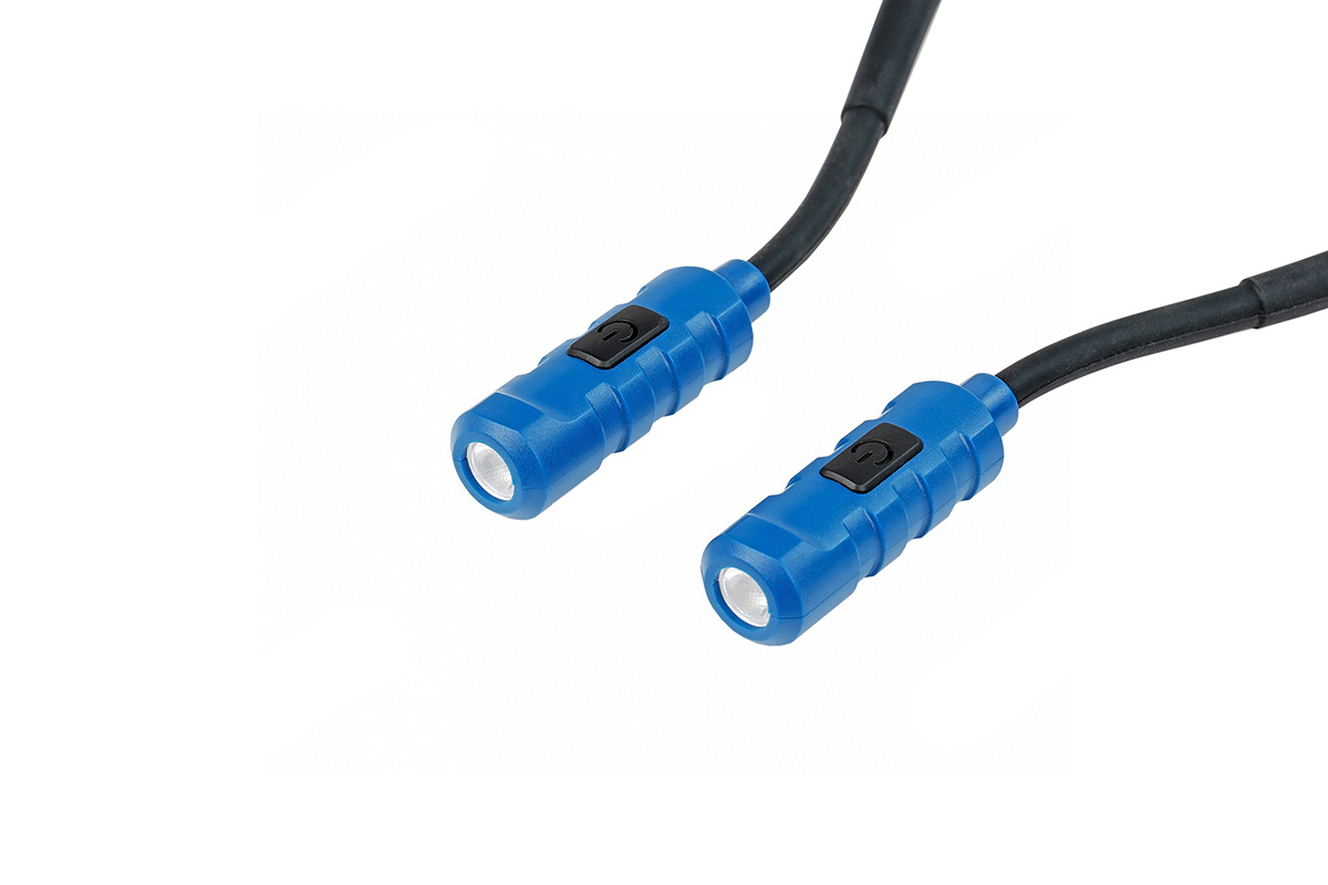 - Фонарь имеет два ярких источника света, каждый с независимым выключателем.