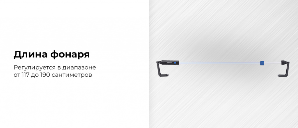 - Длина фонаря регулируется в диапазоне от 117 до 190 сантиметров.