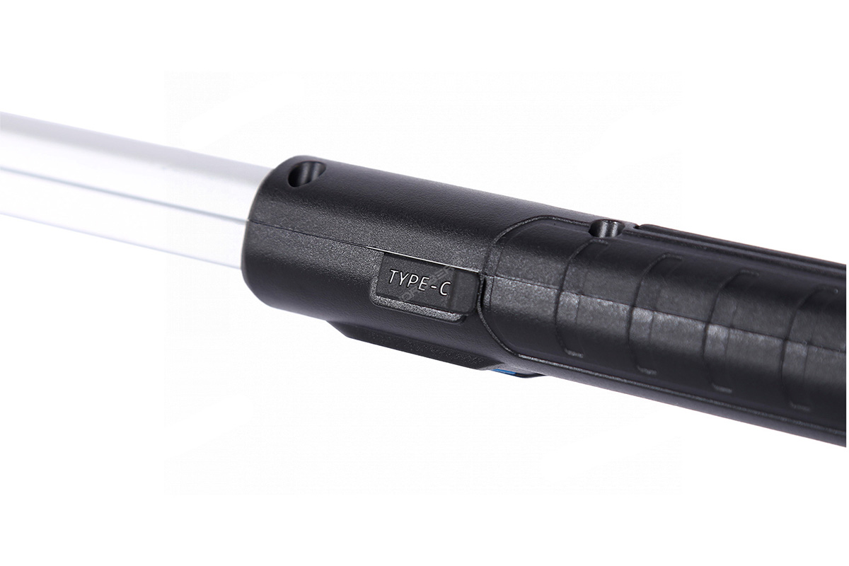 - Зарядка встроенного аккумулятора осуществляется через разъем Type-C в фонаре и через разъем USB от источника питания.