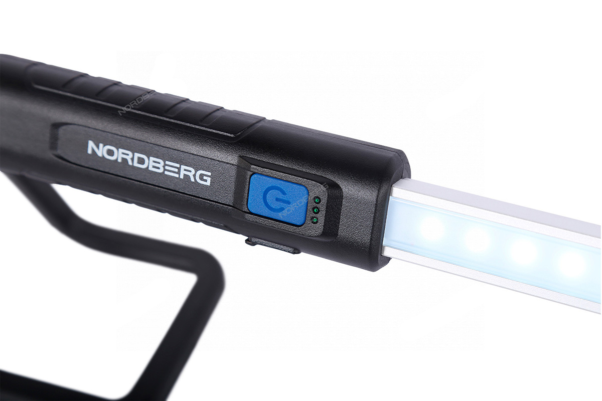 Светодиодный аккумуляторный подкапотный фонарь NORDBERG 1972 – осветительный прибор для профессионального использования в автосервисах и СТО. Предназначен для освещения моторного отсека автомобиля, обеспечивая яркое и направленное освещение при поднятом капоте для обслуживания двигателя и других компонентов.