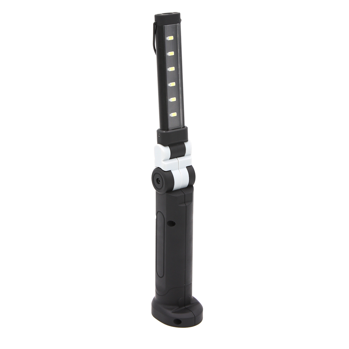 Переносная светодиодная лампа IC-200 с изменяемым углом наклона в противоударном корпусе. Фонарь имеет 2 режима работы: основной свет 350 Лм (3 Вт), торцевой свет 100 Лм (1 Вт). Высококачественные светодиоды, изготовленные по технологии COB, формируют световой поток высокой четкости. Поворотный механизм лампы имеет 2 оси вращения и позволяет регулировать направление светового потока в диапазоне 0 - 360°. Основание лампы оснащено мощным магнитом для крепления лампы к кузову автомобиля или стойкам подъемника во время работы. Также для удобства работы предусмотрен металлический держатель для подвеса. Время работы лампы составляет до 3,5 часов в режиме рабочего света и до 12 часов в режиме торцевого света.