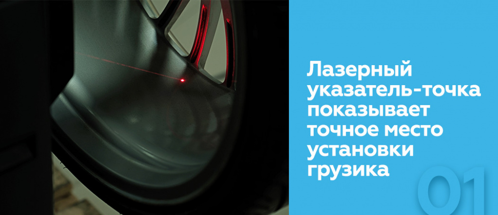 - Лазерный указатель-точка показывает точное место установки грузика.