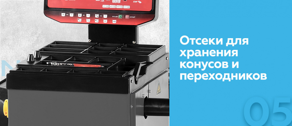 - Отсеки для хранения конусов и переходников