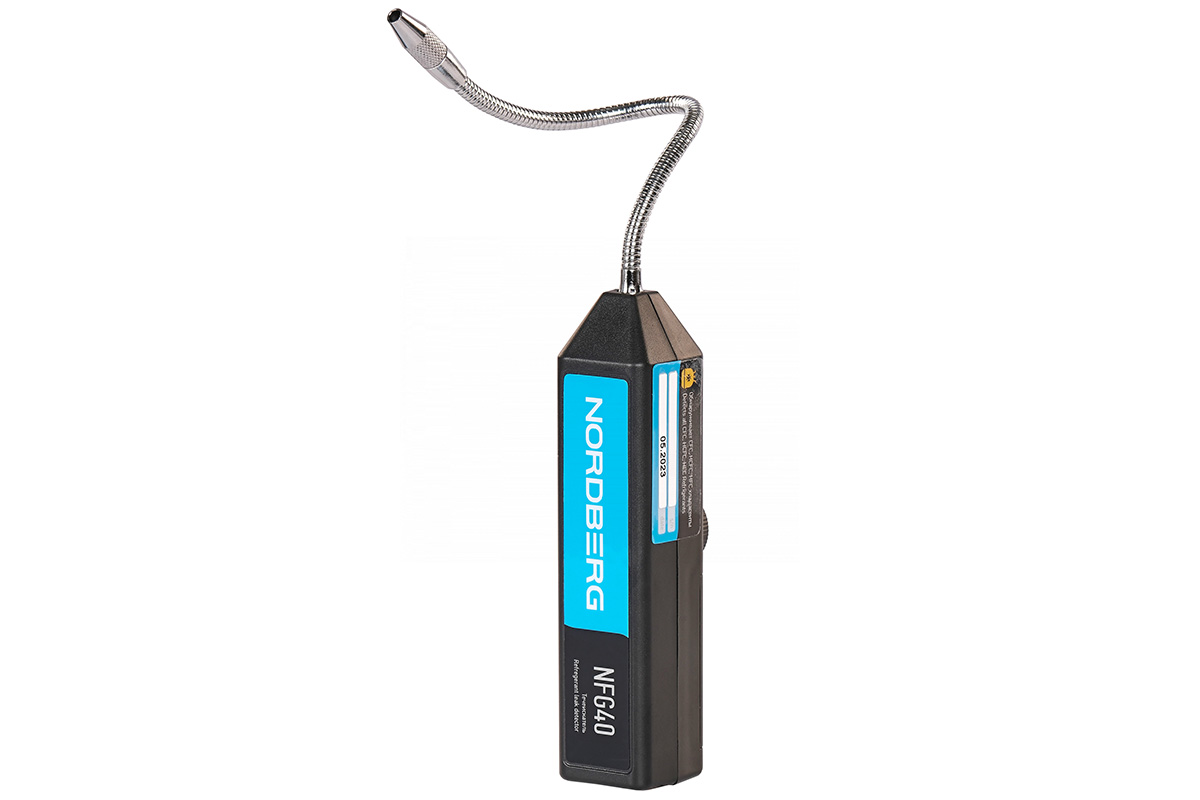 Течеискатель NORDBERG NFG40 – специальный детектер утечек в системах кондиционирования, холодильных, рефрижераторных и прочих газонаполненных установках. Используется для обнаружения утечки хладагента с помощью сенсора, который установлен на конце зонда.
