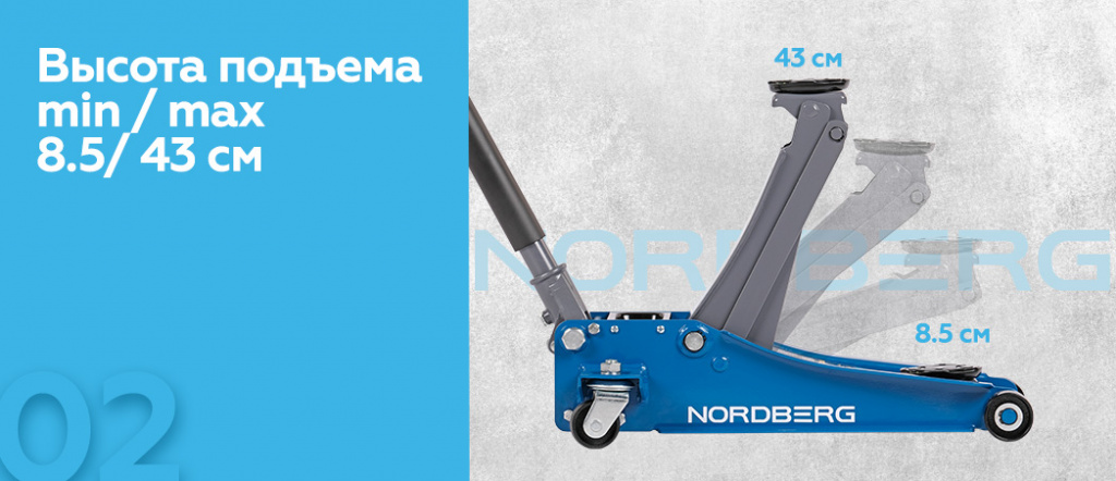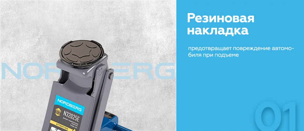 - NORDBERG (N32025E) Домкрат подкатной 2,5 т с резиновой насадкой