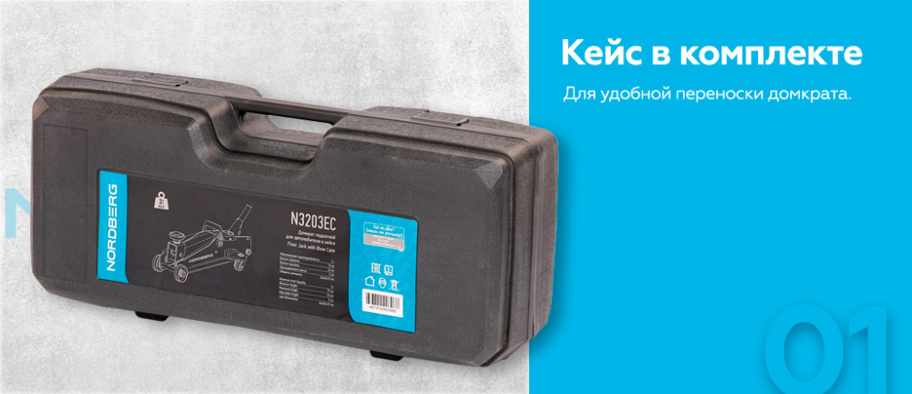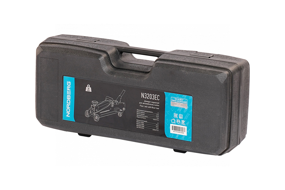 - NORDBERG (N3203EC) Домкрат подкатной для автолюбителя в кейсе, 3 т