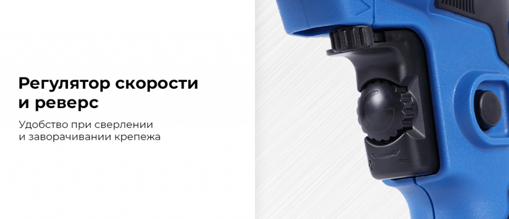 - Регулятор скорости и реверс — удобство при сверлении и заворачивании крепежа;