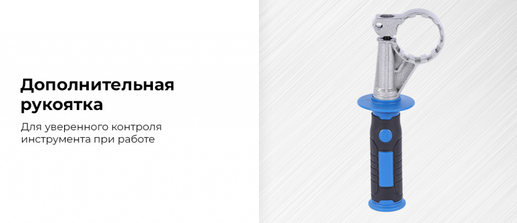 - Эргономичная дополнительная рукоятка — уверенный контроль инструмента;