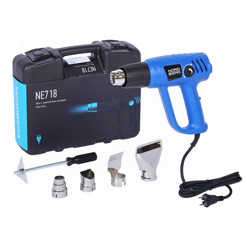 - NORDBERG (NE718) Фен, 4 насадки, в кейсе, 50-600 °С, 2000 Вт