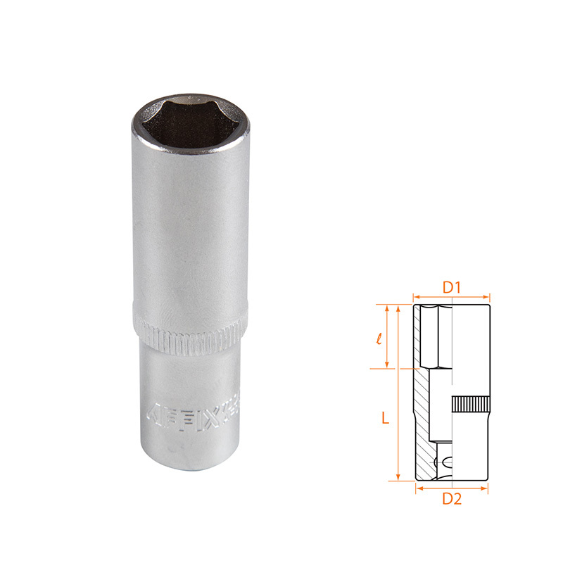 Глубокая торцевая головка имеет увеличенную длину и применяется для работы со сложными деталями удлиненной или углубленной формы, а также для обслуживания крепежа в труднодоступных местах.