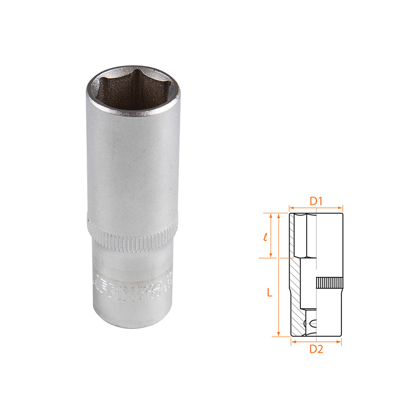 Глубокая торцевая головка имеет увеличенную длину и применяется для работы со сложными деталями удлиненной или углубленной формы, а также для обслуживания крепежа в труднодоступных местах.