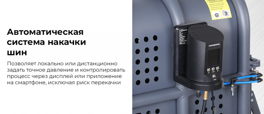- Автоматическая система накачки шин — позволяет локально или дистанционно задать точное давление и контролировать процесс через дисплей или приложение на смартфоне, исключая риск перекачки;