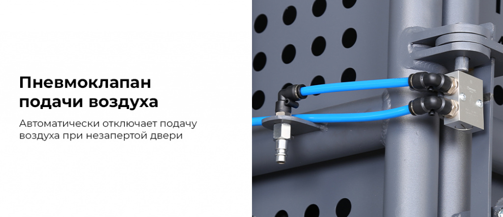 - Пневмоклапан подачи воздуха — автоматически отключает подачу воздуха при незапертой двери;