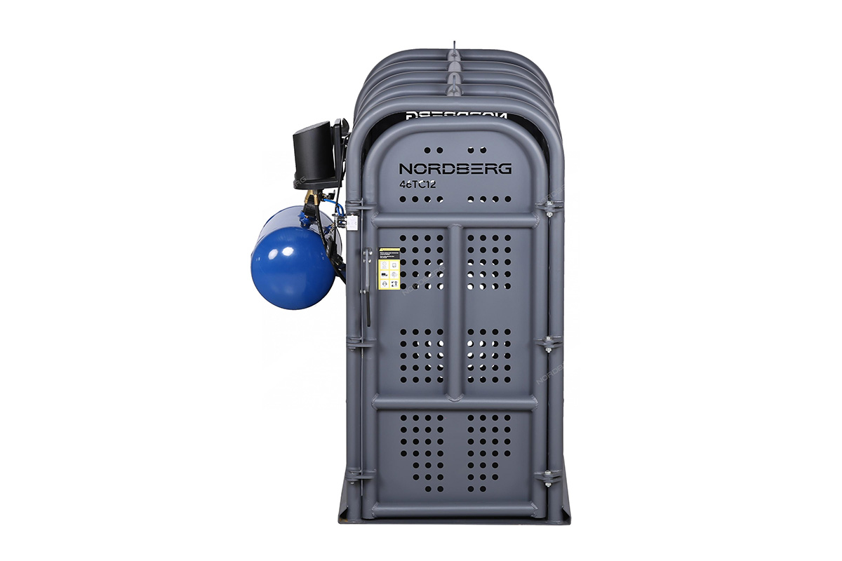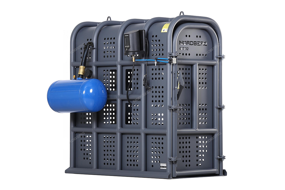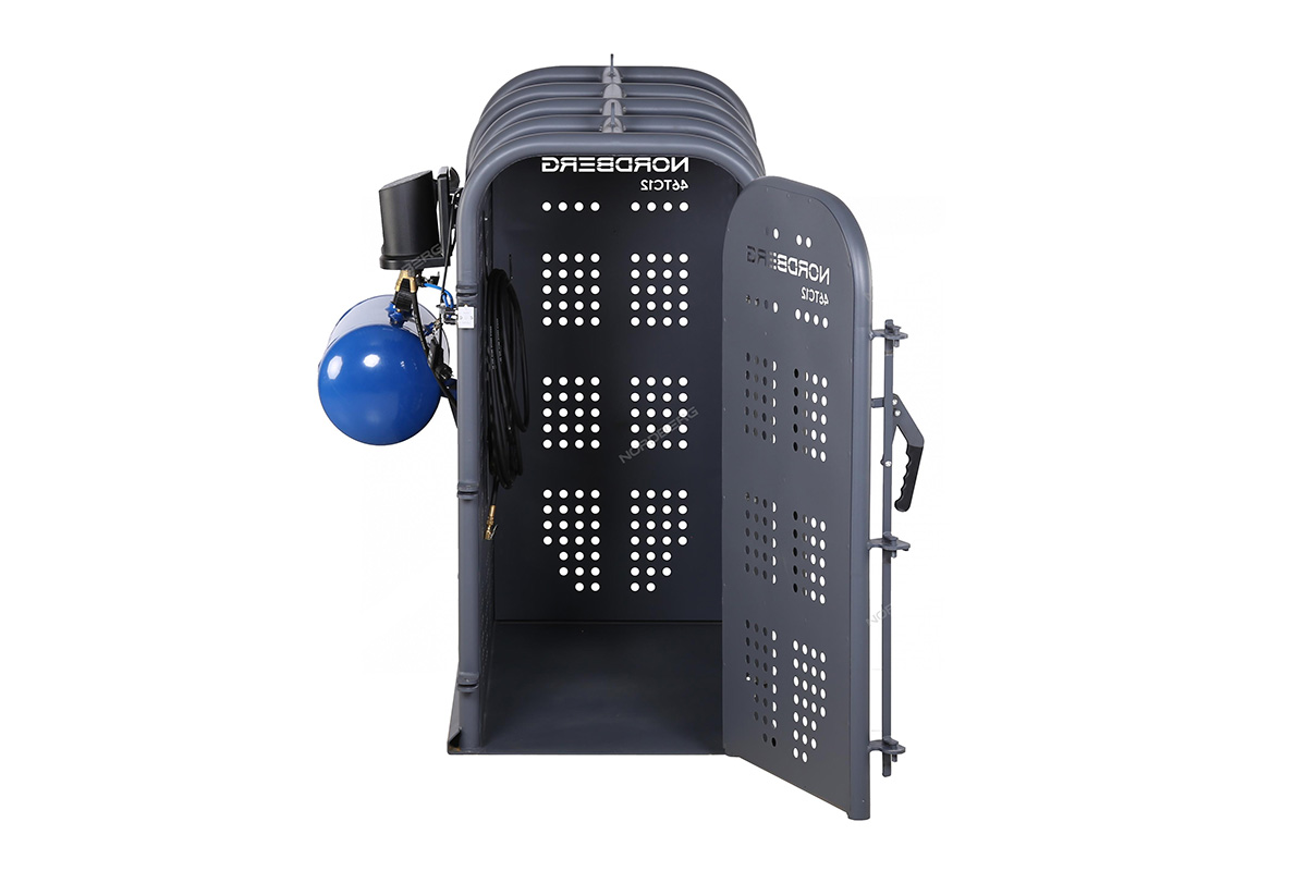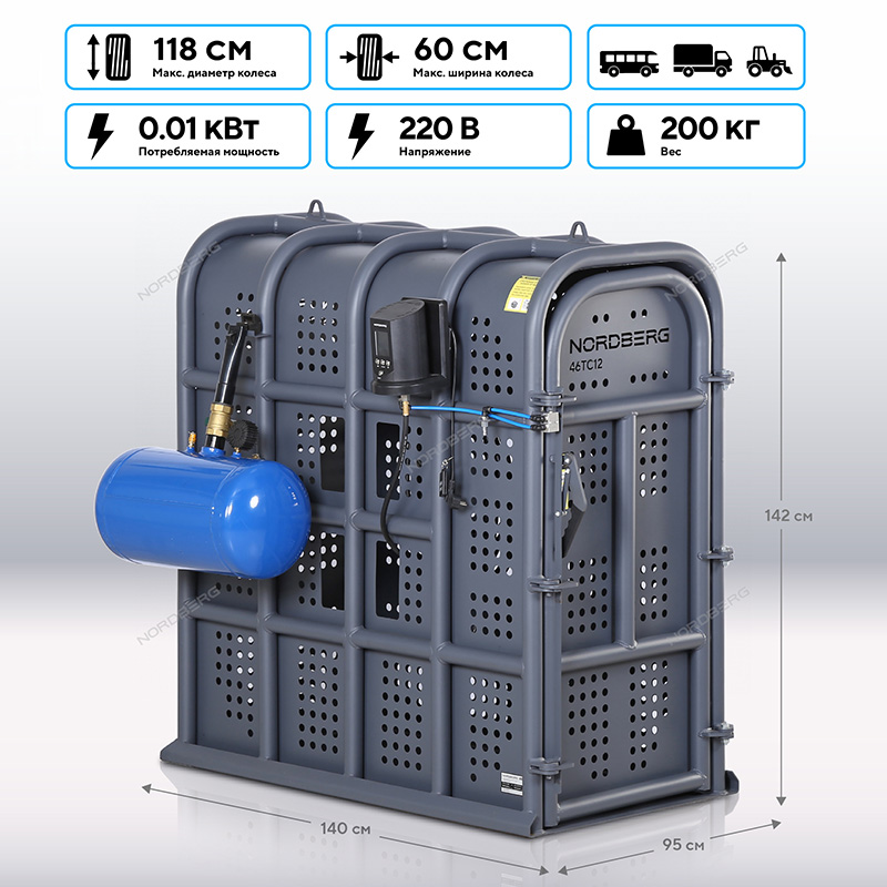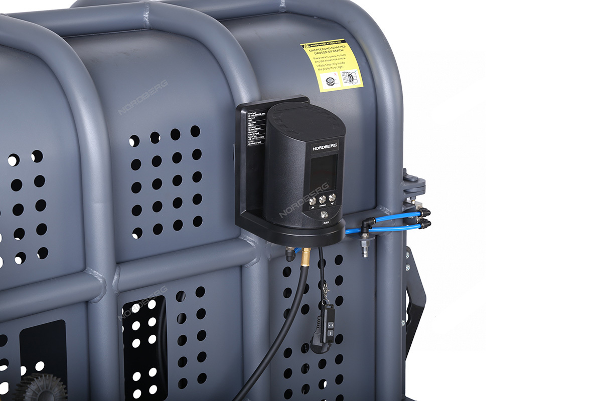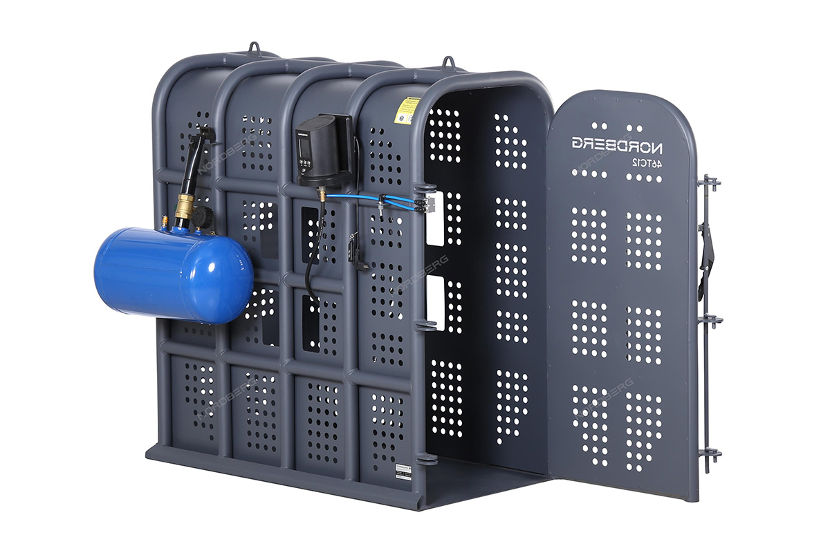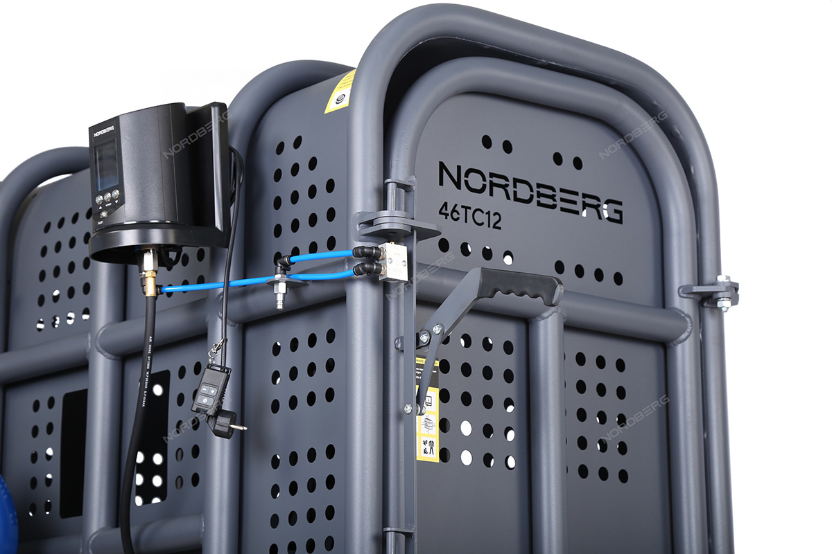 Клеть для накачки грузовых колес NORDBERG 46TC12 предназначена для безопасной накачки шин грузовых автомобилей, автобусов, сельскохозяйственной и строительной техники. Основное назначение — защита оператора от травм при возможном взрыве шины в процессе накачивания.