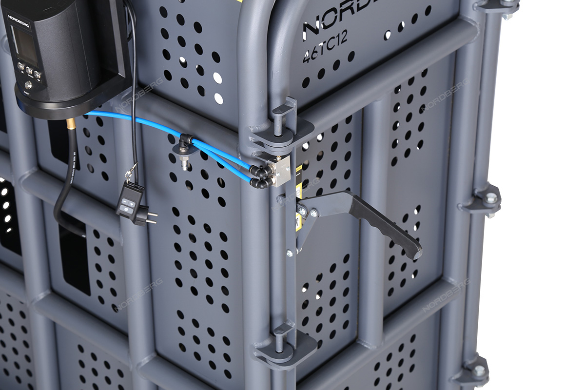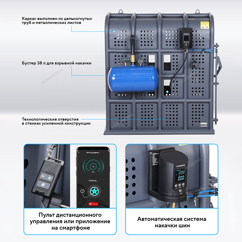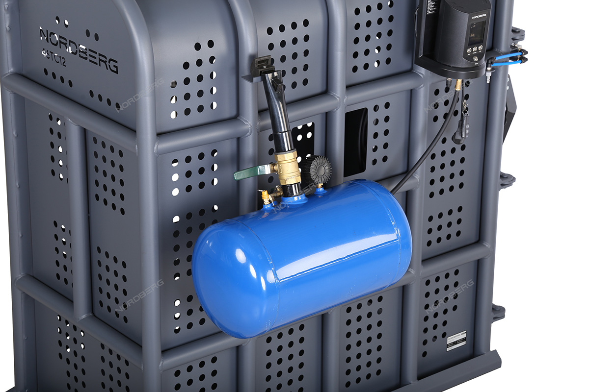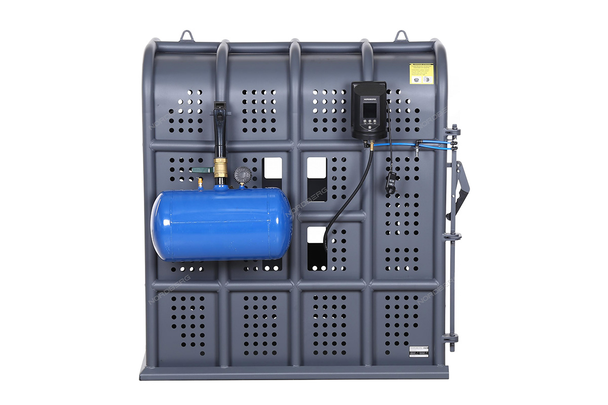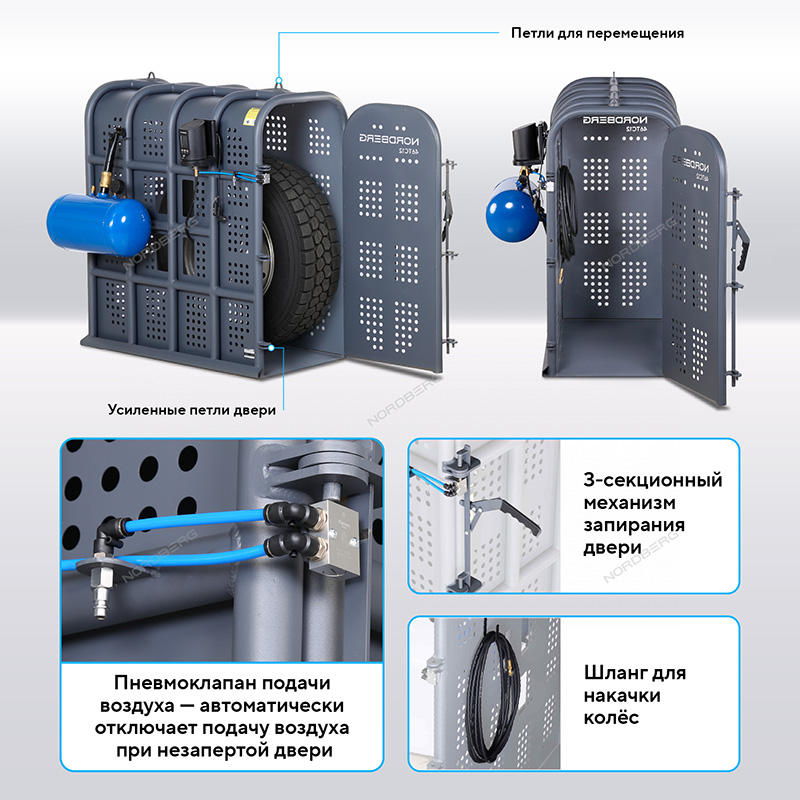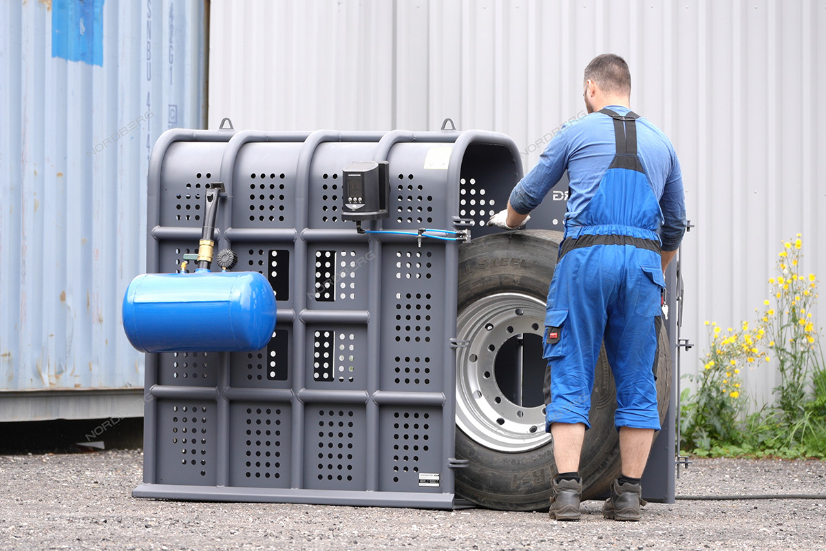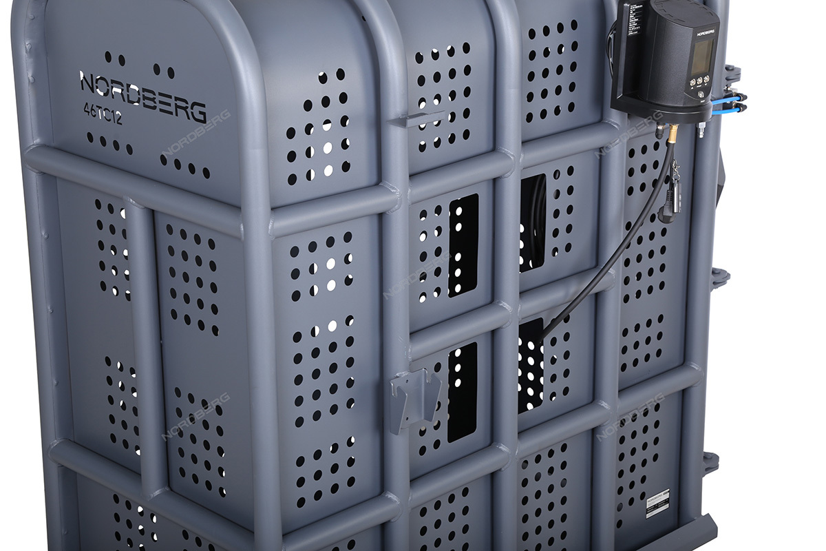 Клеть для накачки грузовых колес NORDBERG 46TC12 предназначена для безопасной накачки шин грузовых автомобилей, автобусов, сельскохозяйственной и строительной техники. Основное назначение — защита оператора от травм при возможном взрыве шины в процессе накачивания.