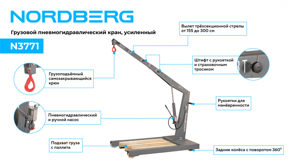 - NORDBERG (N3771) Кран пневмогидравлический грузовой, усиленный, 3 т