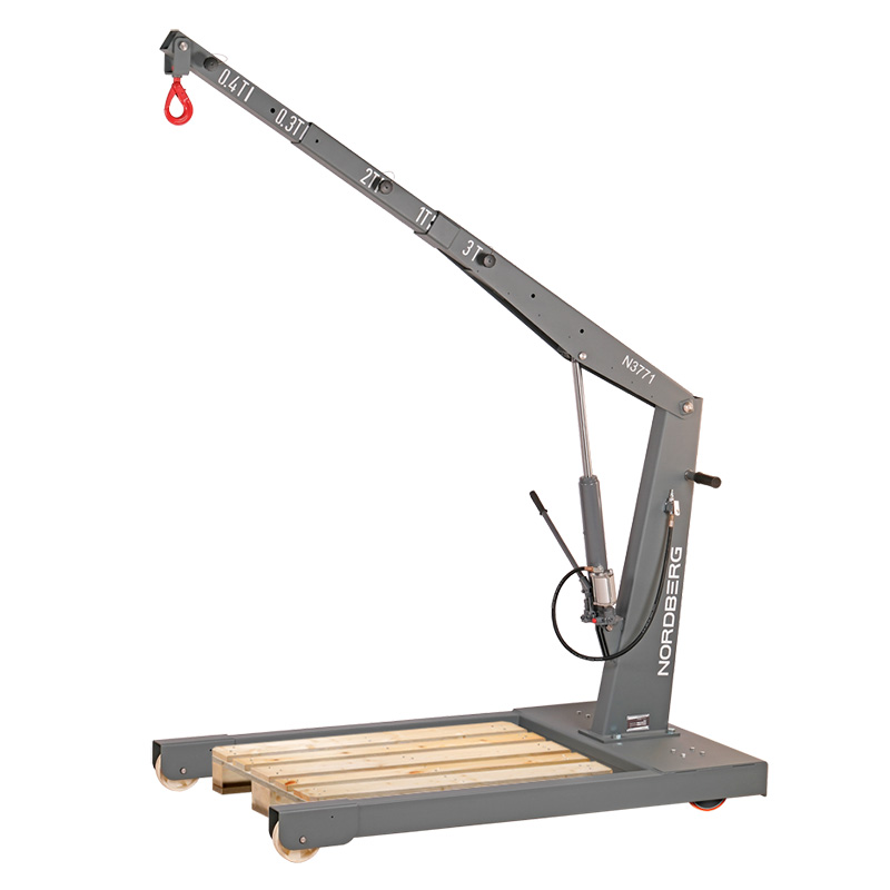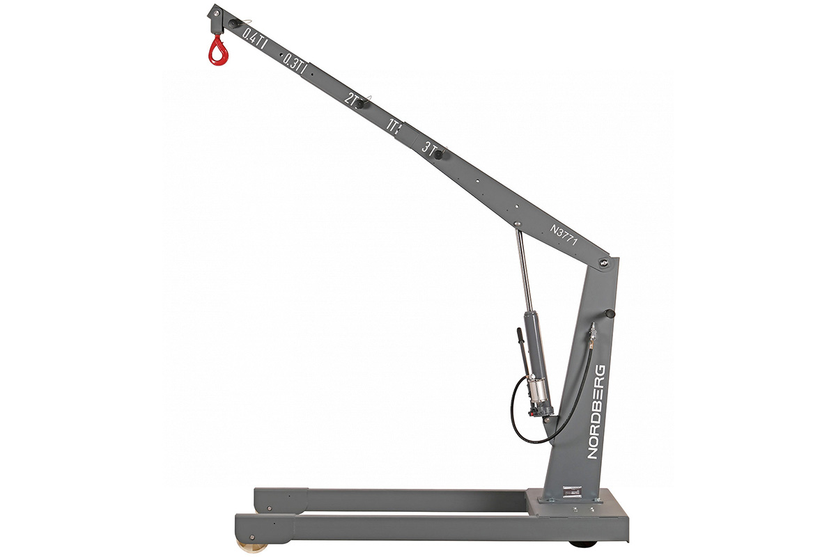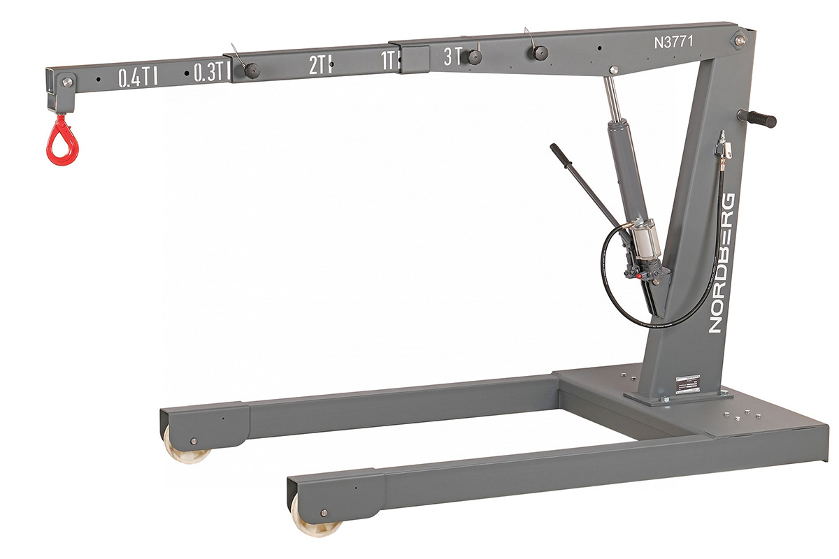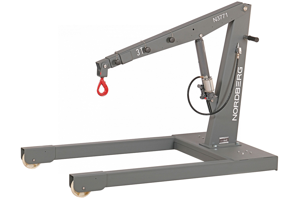 Кран гидравлический грузовой усиленный NORDBERG N3771 – профессиональное грузоподъемное оборудование для использования на СТО, в автомастерских и производственных предприятиях. Предназначен для подъема и перемещения автомобильных узлов, агрегатов и других грузов массой до 3 тонн. Подъем и опускание грузов производится с помощью гидравлического цилиндра с ручным и пневматическим приводом