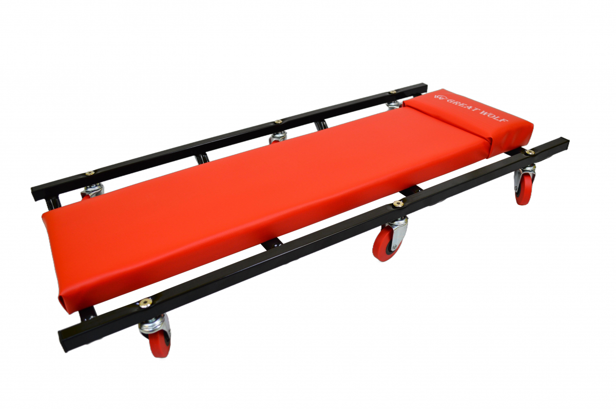 Лежак подкатной низкопрофильный красный Great Wolf GWC-1 предназначен для эксплуатации в точках технического обслуживания автомобилей, а также оптимальна для самостоятельного ремонта транспортных средств. Для удобного перемещения оборудован 6ю поворотными колесами.