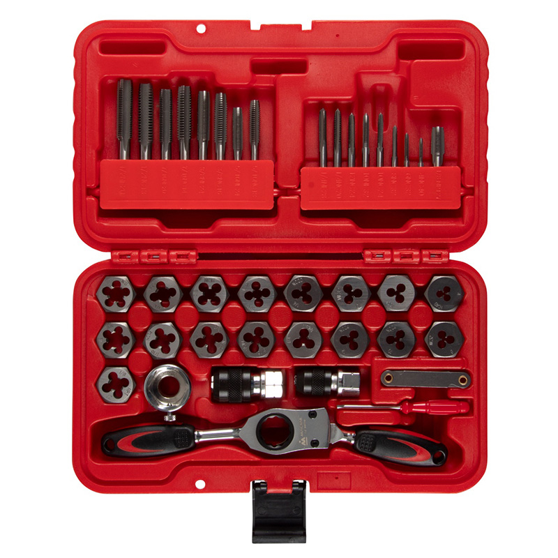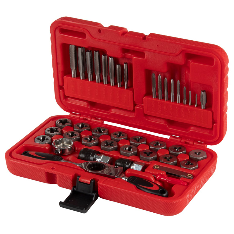 | Метчики и плашки, 34 шт. | 4NC40, 6NC32, 8NC32, 10NC24, 10NF32, 12NC24, 1/8"NPT27, 1/4"NC20, 1/4"NF28, 5/16"NC18, 5/16"NF24, 3/8"NC16, 3/8"NF24, 7/16"NC14, 7/16"NF20, 1/2"NC13, 1/2"NF20 |