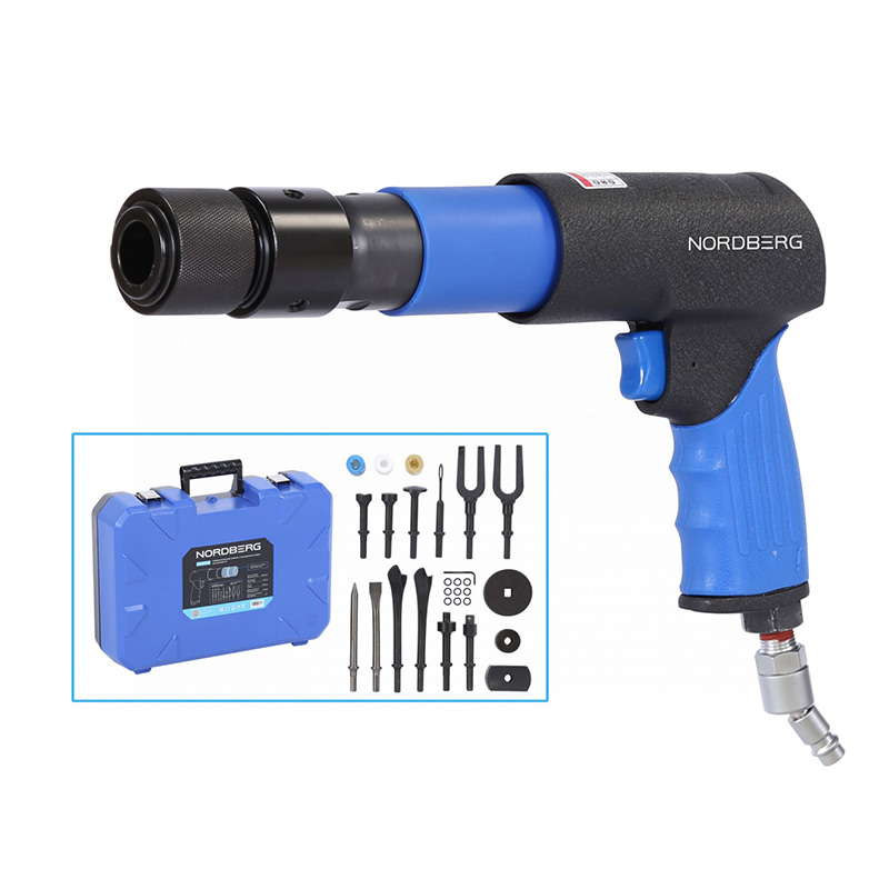 - NORDBERG (NP5070K1) Пневмозубило 250 мм, с комплектом насадок и быстросъемным держателем в кейсе, 20 предметов