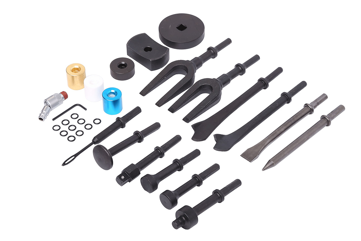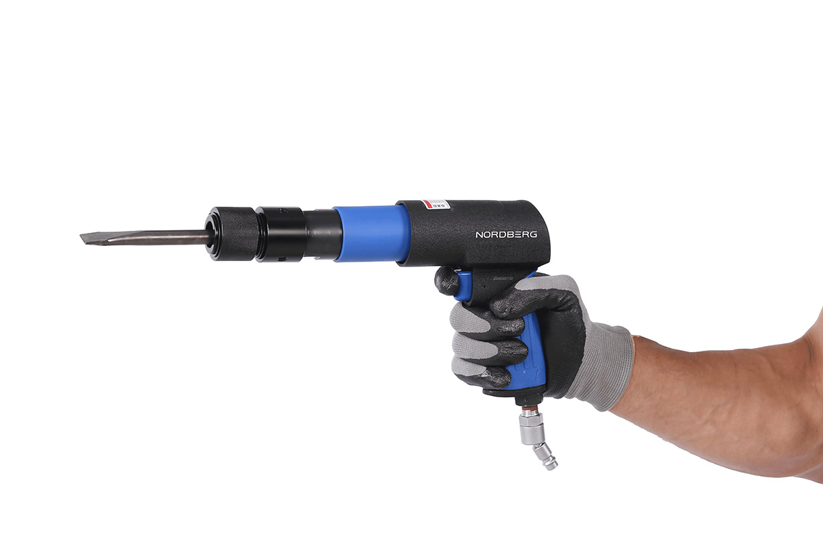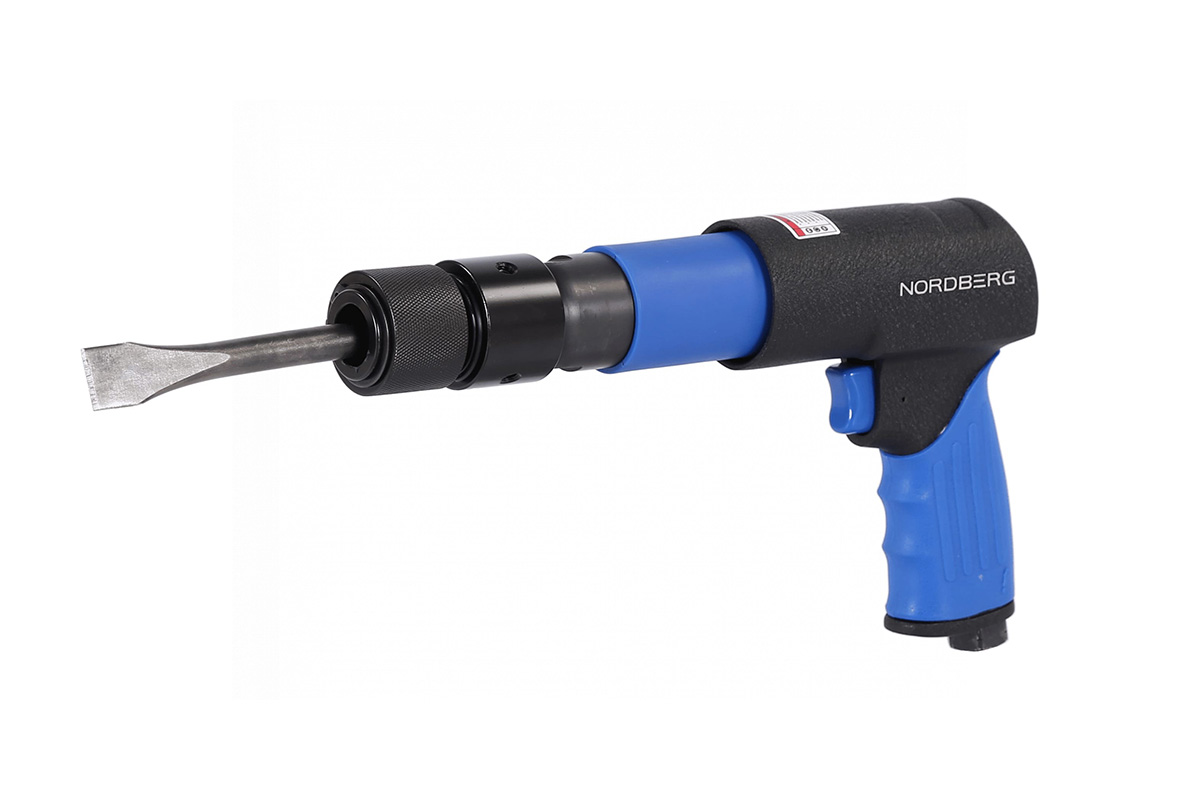 NORDBERG NP5070K1 — профессиональное пневмозубило с расширенной комплектацией для кузовного ремонта и демонтажных работ. Предназначено для срубания болтов, заклепок, ремонта кузова и демонтажа шаровых опор. Оснащено быстросъемным патроном для быстрой смены насадок. Рабочее давление — 6,2 бар, до 2200 ударов в минуту. Не подходит для закаленных сплавов.