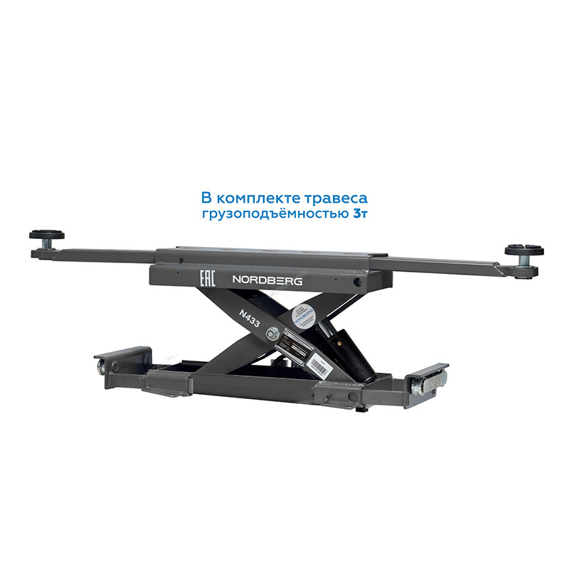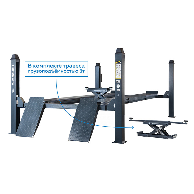 Надежный слесарный подъемник с увеличенной грузоподъемностью и удлиненной платформой Nordberg 4450 серго цвета, для сход-развала, c траверсой (от гидростанции) 3т.