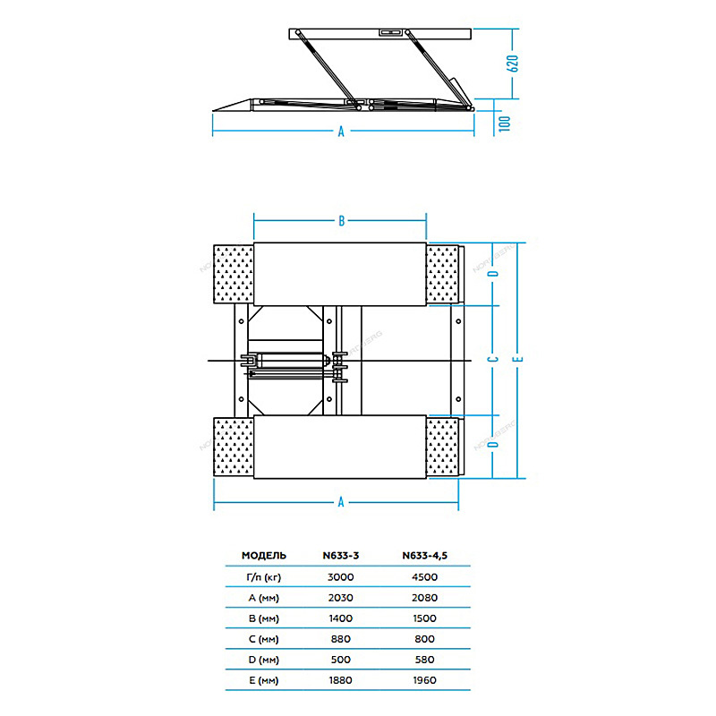 - NORDBERG (N633-4.5_220) Подъемник ножничный 220В, г/п 4.5т