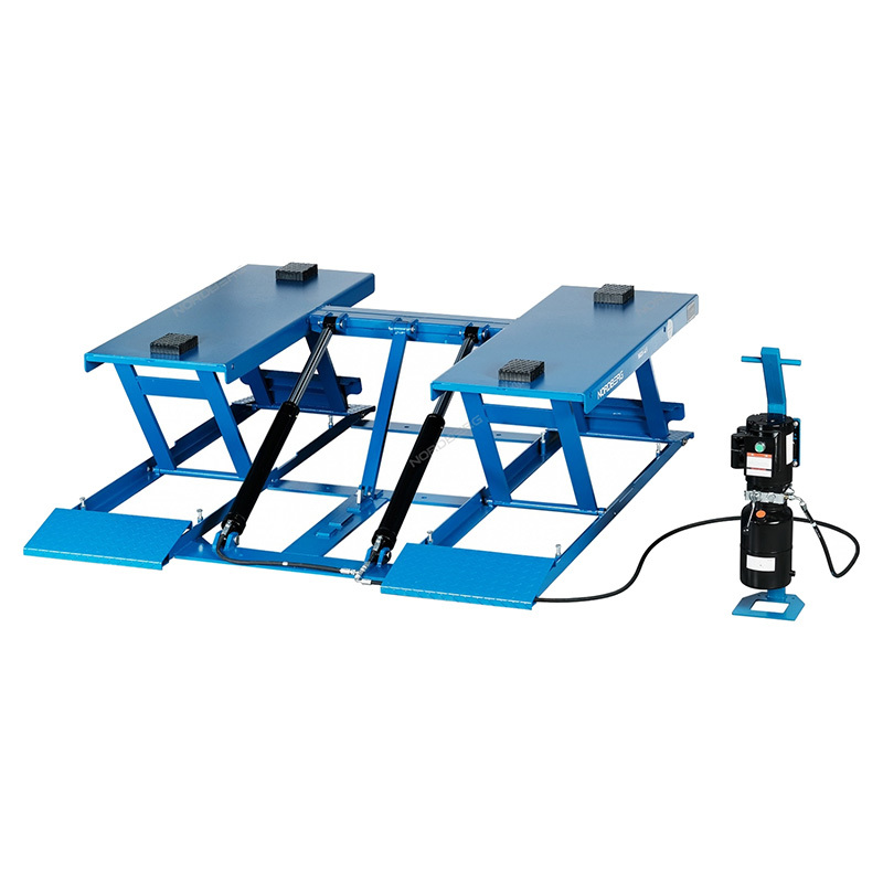 - Низкий профиль (высота в сложенном состоянии 100 мм), что позволяет использовать для подъема автомобилей с низким клиренсом.