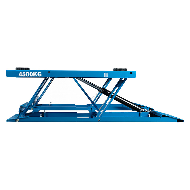 - Низкий профиль (высота в сложенном состоянии 100 мм), что позволяет использовать для подъема автомобилей с низким клиренсом.