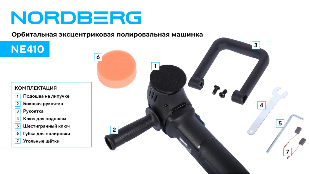 - NORDBERG (NE410) Полировальная машинка орбитальная, диск 75 мм, 2000-5500 об/мин