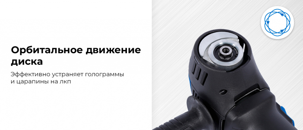 - Орбитальное движение обеспечивает более равномерную полировку поверхности и уменьшает риск появления голограмм