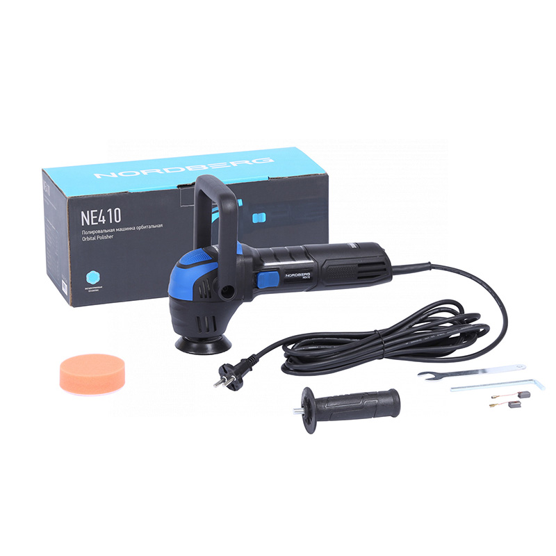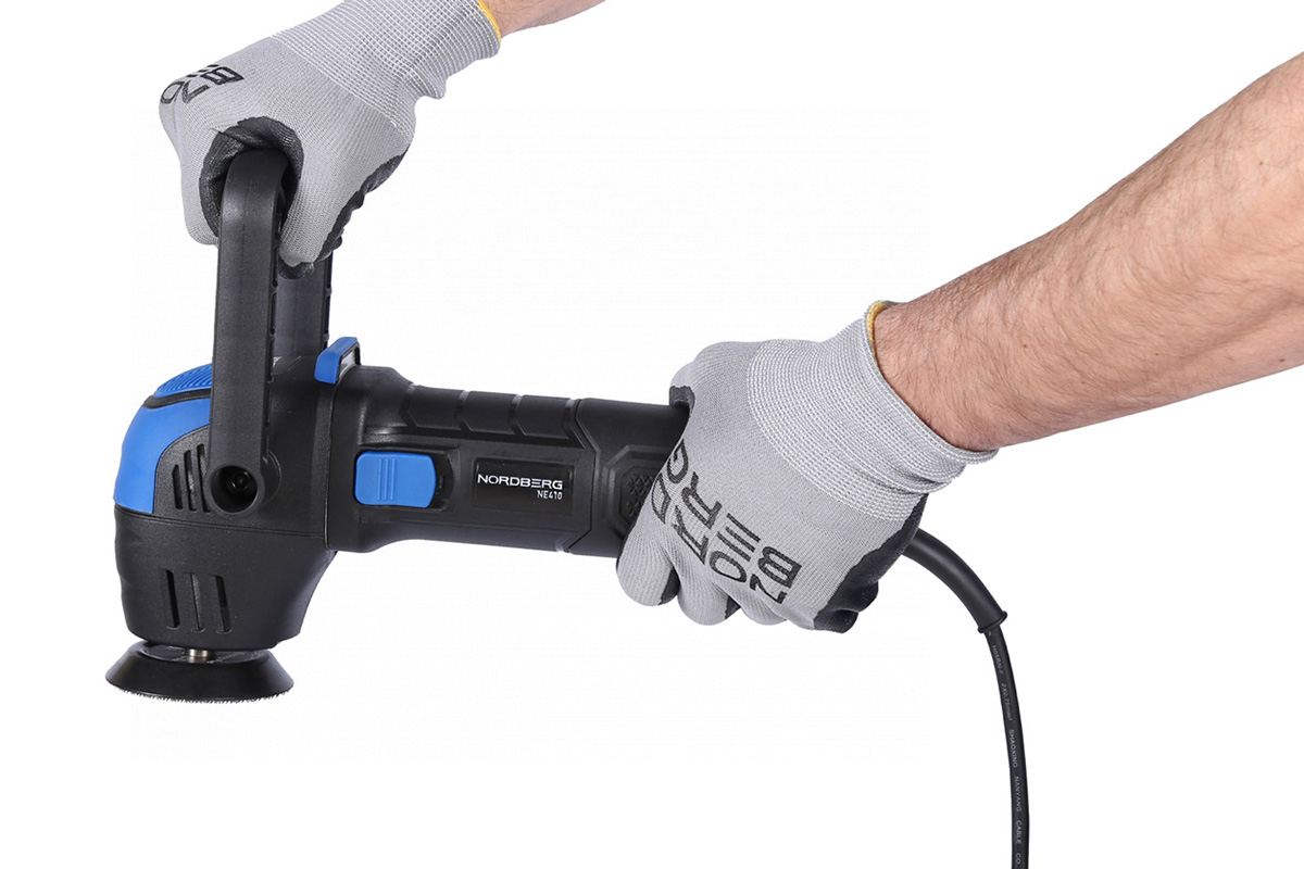 Орбитальная полировальная машинка NORDBERG NE410 – электрический инструмент для выполнения профессиональных работ в автосервисах, студиях детейлинга и других предприятиях, занимающихся покраской. Предназначена для финишной полировки узких, малогабаритных и труднодоступных участков лакокрасочных покрытий автомобилей, а также для полировки различных материалов, таких как металл, пластик, дерево.