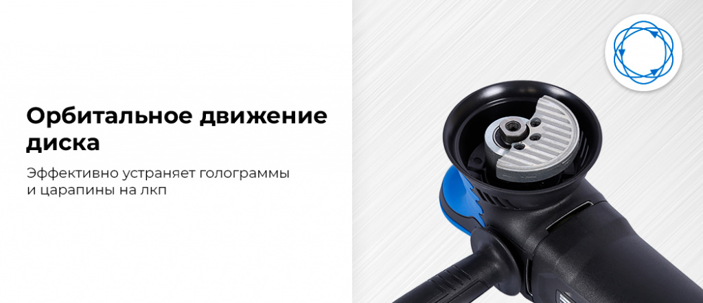 - Орбитальное движение обеспечивает более равномерную полировку поверхности и уменьшает риск появления голограмм