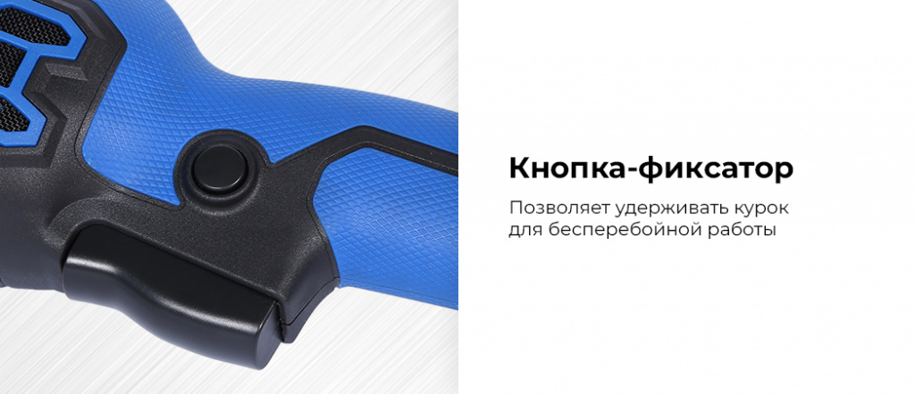 - Кнопка-фиксатор позволяет удерживать курок для беспрерывной работы