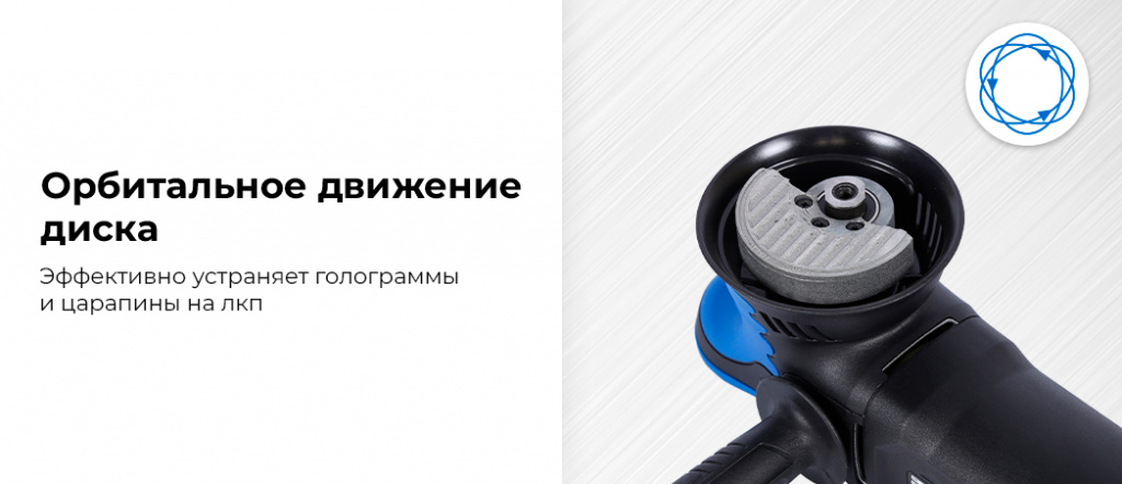 - Орбитальное движение обеспечивает более равномерную полировку поверхности и уменьшает риск появления голограмм