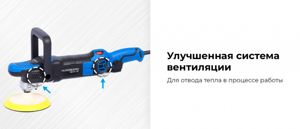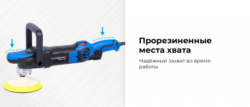 - NORDBERG (NE414-150) Полировальная машинка, диск 150 мм, 450-1950 об/мин, 1200 Вт