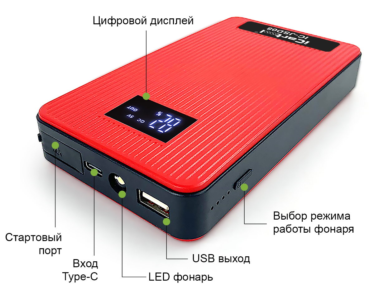 Многофункциональное пусковое устройство для автомобиля iCartool IC-JSD08 представляет собой легкий, компактный, но мощный, современный и высокотехнологичный, а также удобный и простой в использовании гаджет, предназначенный для решения широкого спектра задач.