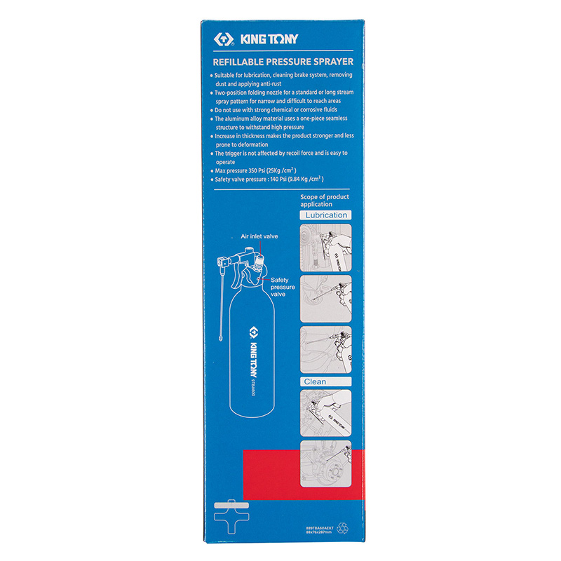 - KING TONY (9TBA600) Пульверизатор технических жидкостей, алюминиевый, 600 мл