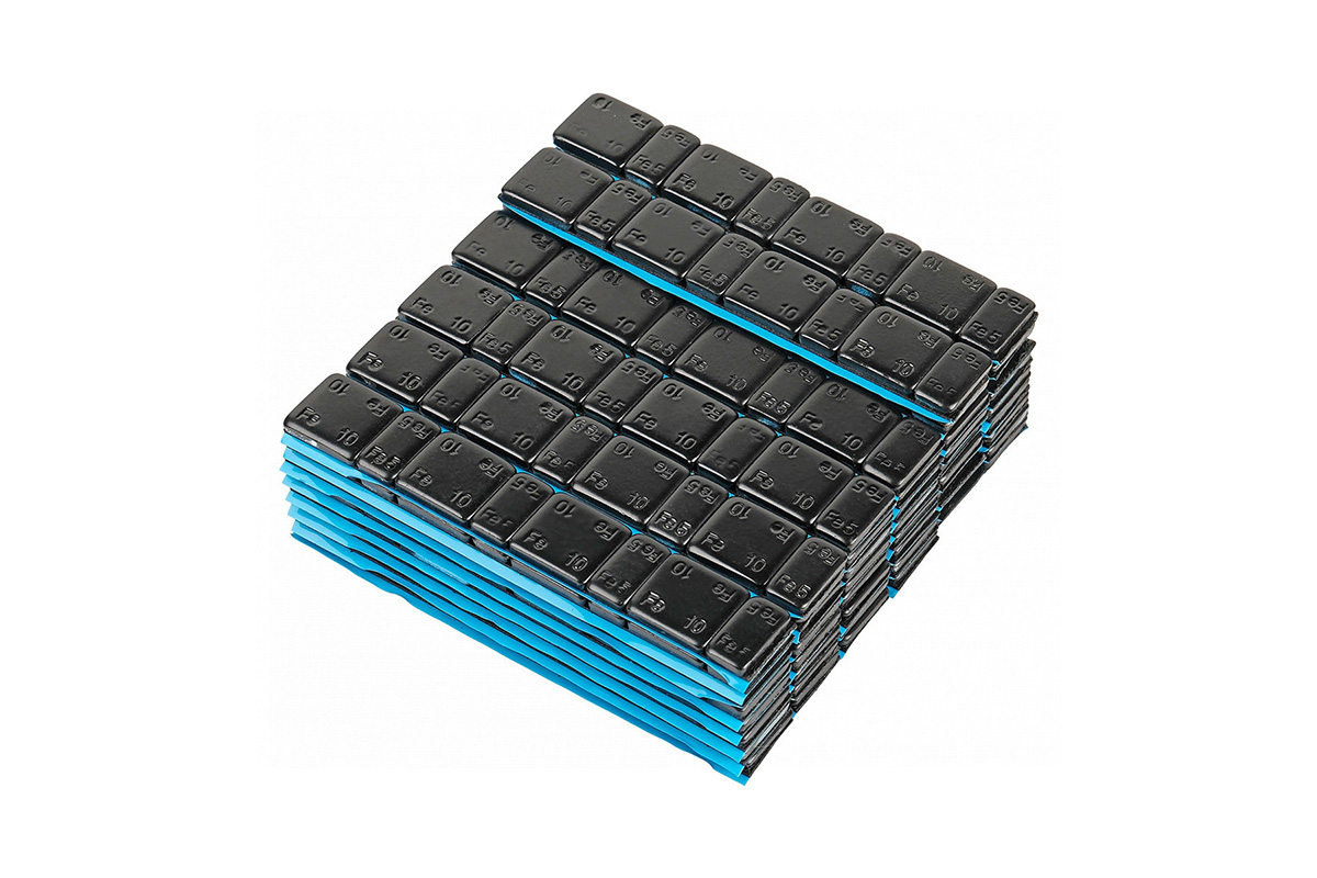 - Используемый адгезивный материал (двусторонний скотч), великолепно зарекомендовавший себя в шиномонтажной отрасли, позволяет гарантировать надежное крепление балансировочного грузика к колесному диску.