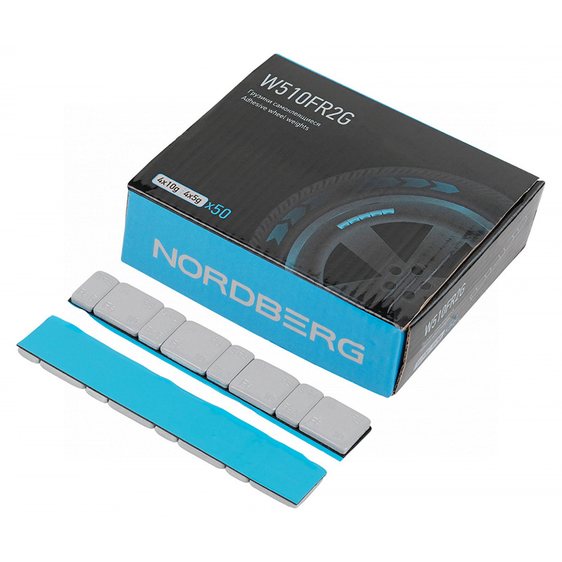 - NORDBERG (W510FR2G) Грузики самоклеящиеся (4х5+4х10 г) Fe закругленные L=12 см, серые, 50 лент
