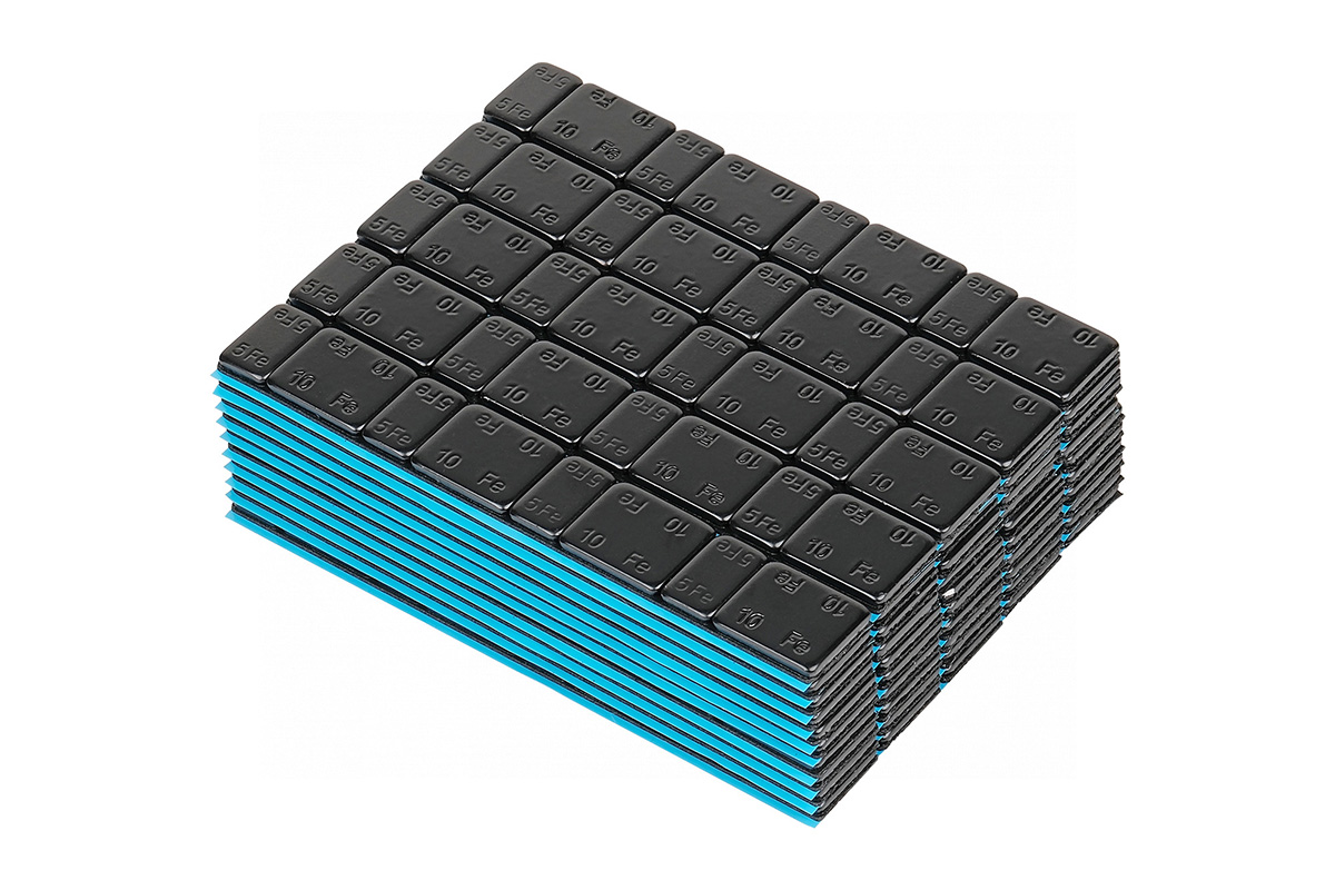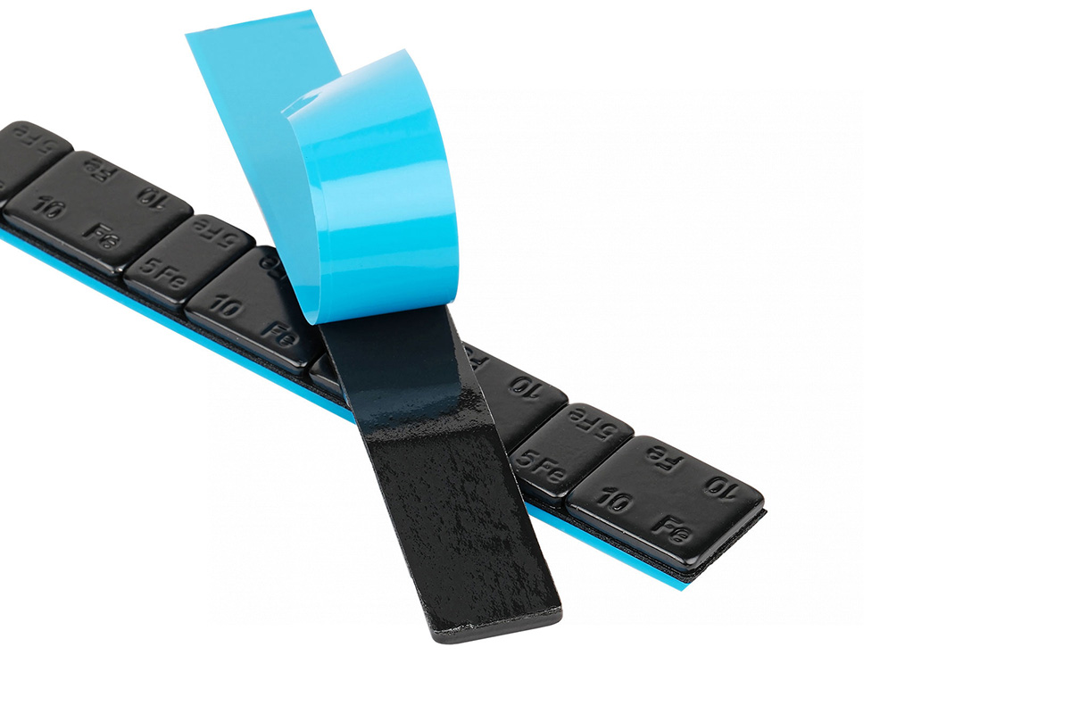 - Используемый адгезивный материал (двусторонний скотч), великолепно зарекомендовавший себя в шиномонтажной отрасли, позволяет гарантировать надежное крепление балансировочного грузика к колесному диску.