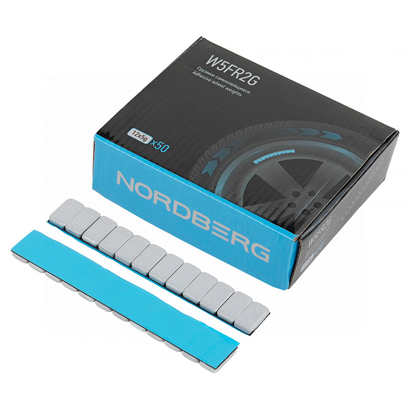 - NORDBERG (W5FR2G) Грузики самоклеящиеся (12х5 г) Fe закругленные L=12 см, серые, 50 лент