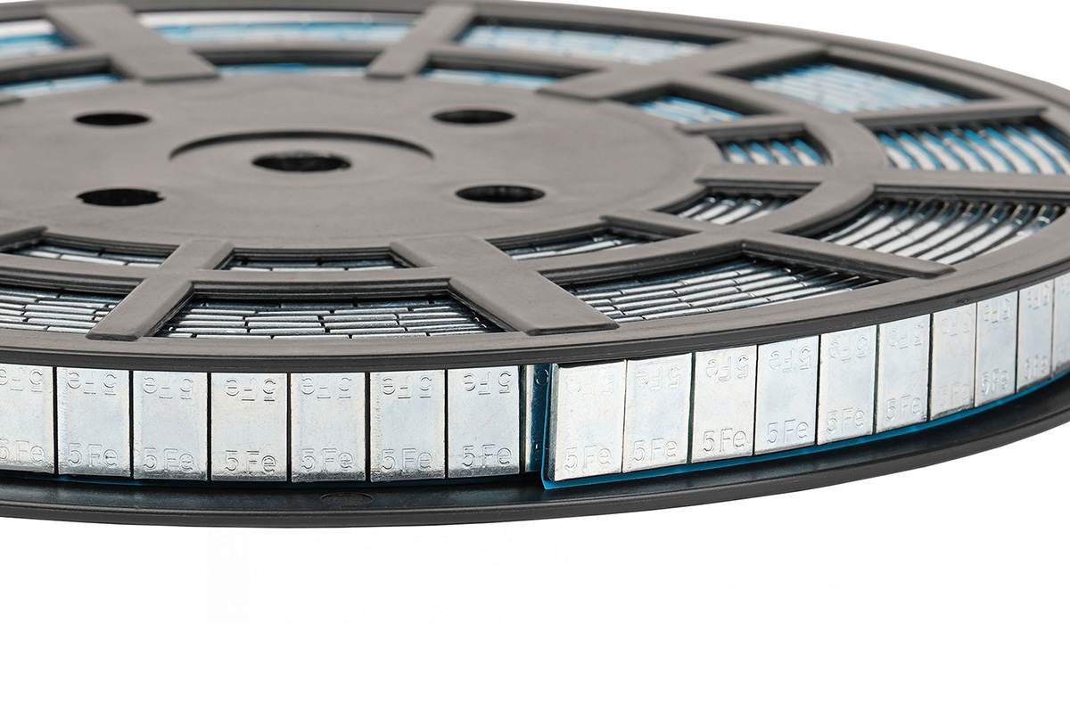 - Используемый адгезивный материал (двусторонний скотч), великолепно зарекомендовавший себя в шиномонтажной отрасли, позволяет гарантировать надежное крепление балансировочного грузика к колесному диску.