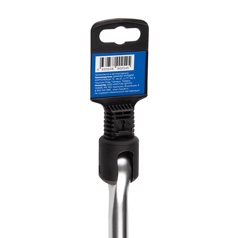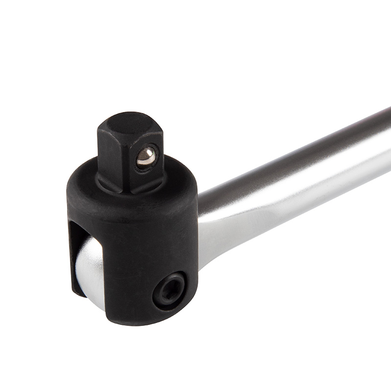 Шарнирный механизм, позволяющий вращать головку на 180 градусов, открывает возможности для работы в труднодоступных местах, где прямой доступ затруднен или невозможен. Вороток изготовлен из инструментальной легированной стали, корпус имеет хромированное матовое покрытие, оснащен рукоятью с двойной Х-типа противоскользящей насечкой и отверстием для подвеса в рабочей зоне на стенде или верстаке.