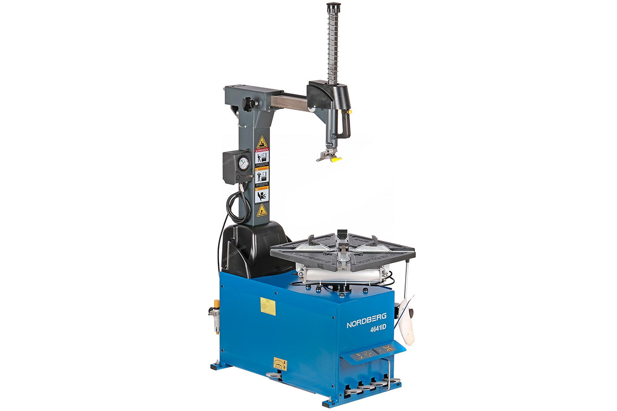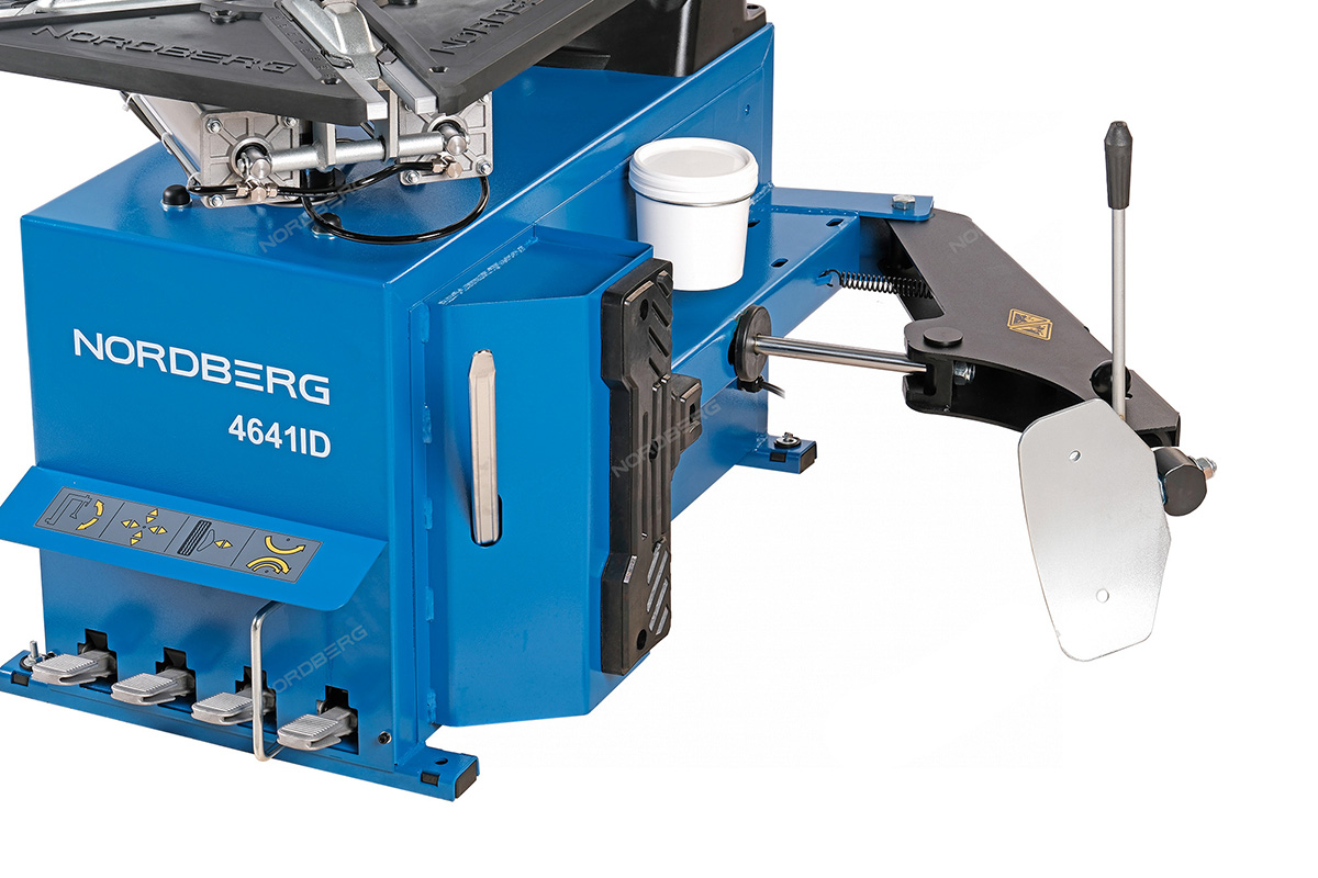 Станок шиномонтажный 380V автомат, 2х скор, стол с накладками, синий NORDBERG 4641ID(B) - профессиональное оборудование для автосервисов, СТО, шиномонтажных мастерских. Помогает быстро проводить работы по демонтажу и монтажу автомобильной шины с диска и на диск, а также для накачивания большинства типов шин.