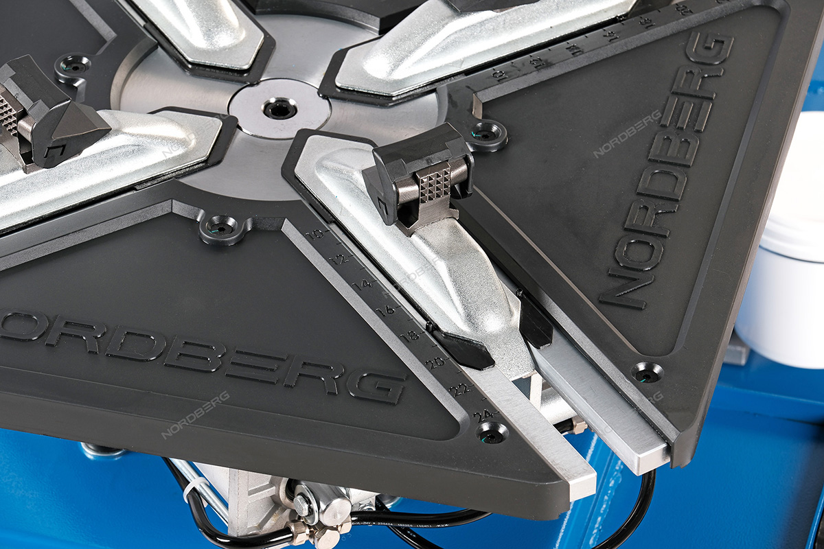 - Увеличенный рабочий стол позволяет надежно фиксировать диски с максимальным диаметром до 25" при зажиме изнутри и 23" при зажиме снаружи.