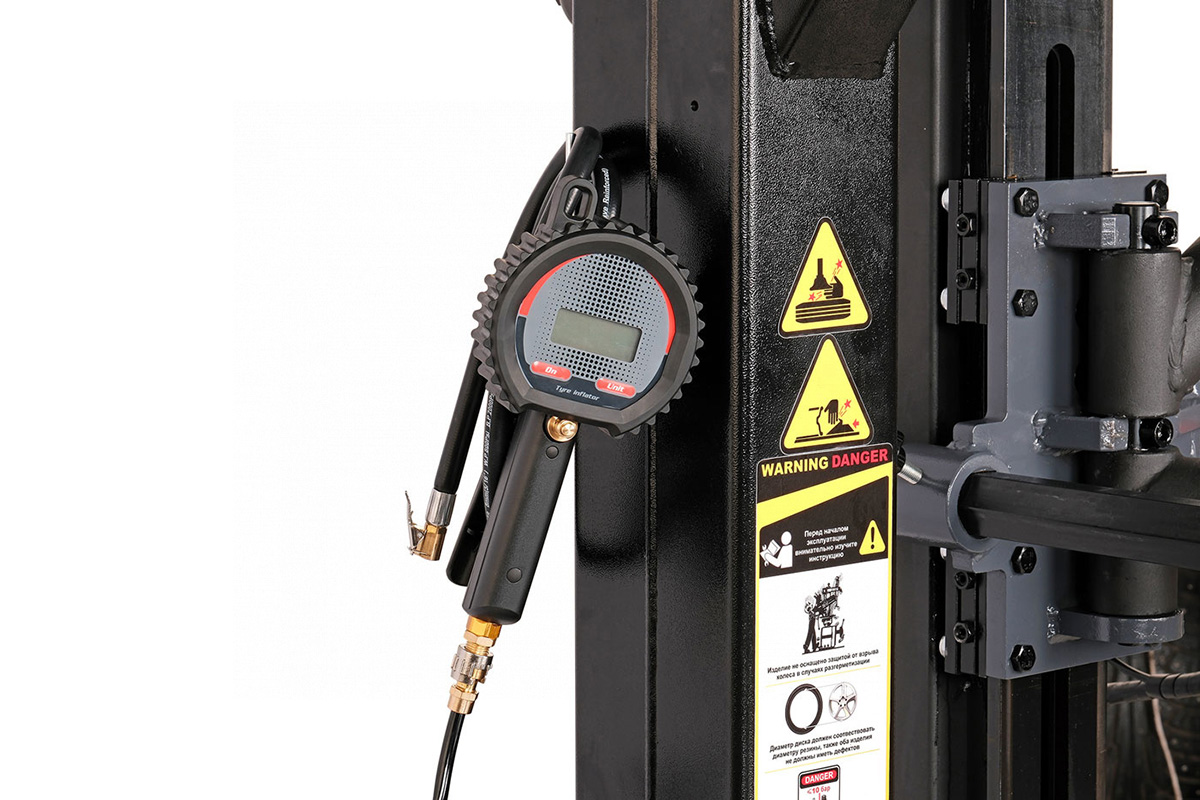 - Подходит для стандартных, низкопрофильных камерных и бескамерных шин автомобилей, легких грузовиков, а также мотоциклов и квадроциклов (комплект для работы с мотоциклетным колесами опционально).