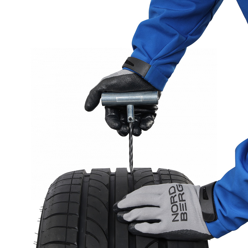 NORDBERG NTR04 — предназначен для прокола в автомобильной шине перед установкой ремонтного жгута или "грибка". Напильник позволяет быстро сформировать и подготовить отверстие, обеспечивая надежную фиксацию заплатки. Применяется на станциях технического обслуживания автомобилей (СТО), в автосервисах, автомастерских.